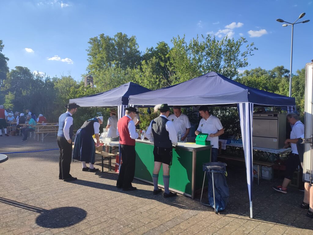 Das Ende des Sommermonats Juni stand im Zeichen gleich zweier Veranstaltungen, die parallel stattfanden: Rock am Speyerbach, ausgerichtet von der Lebenshilfe Neustadt e.V., und der 75. Geburtstag der Neustadter Trachtengruppe, der im Rahmen der Johannisfeier des Landestrachtenverbandes Rheinland-Pfalz begangen wurden. Während wir seit über einem Jahrzehnt schon die Lebenshilfe bei Rock am Speyerbach ehrenamtlich durch Getränke- und Essensverkauf unterstützen, war unser Engagement für die Trachtengruppe bei solch einem Jubiläum ein Novum. Es war uns eine Freude, unsere Freunde von der Trachtengruppe Neustadt bei ihrem Jubiläum unterstützen zu können!