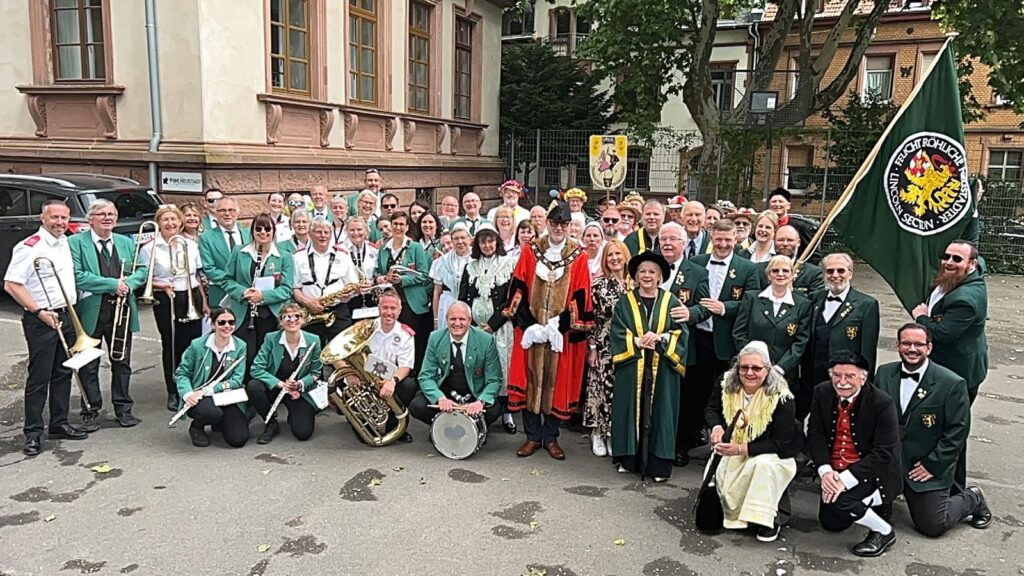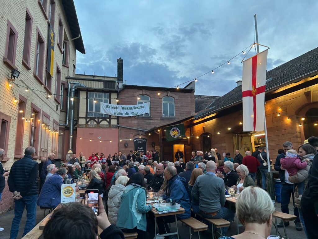 Der Höhepunkt folgte am Sonntag, als alle drei Vereine mit ihren drei Partnervereinen zusammen an einer der großen Paraden durch die Straßen Neustadts teilnahmen. Im Anschluss daran kehrten wir Feucht-Fröhlichen zusammen mit unseren englischen FFNlern im Weingut Müller-Kern im Ortsteil Hambach ein, um im freundschaftlichen Wettstreit die traditionellen Pub Games auszutragen. Sieger -natürlich- die Pfälzer Feucht-Fröhlichen Neustadter. Es war uns ein Fest, und wir freuen uns auf unseren Gegenbesuch in Lincoln 2027!
