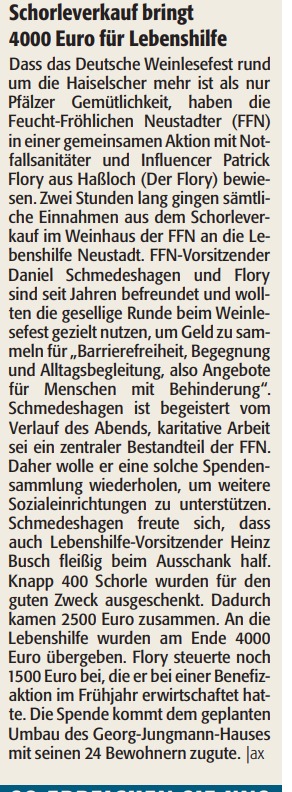 Seit über zehn Jahren unterstützen wir die Lebenshilfe Neustadt e.V. bei der Durchführung ihrer Veranstaltung „Rock am Speyerbach“ – auch 2024 eine Herzensangelegenheit für uns Feucht-Fröhliche!